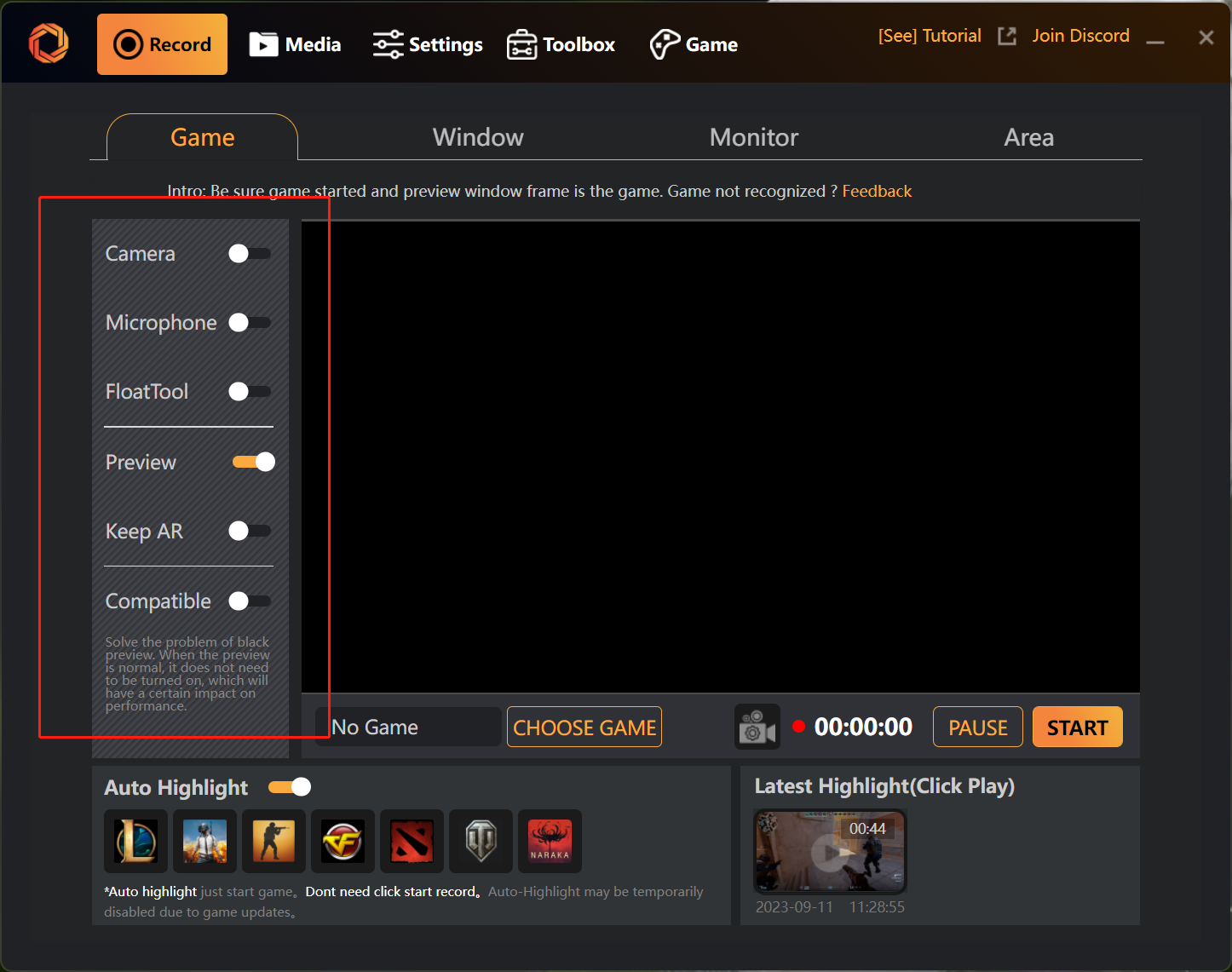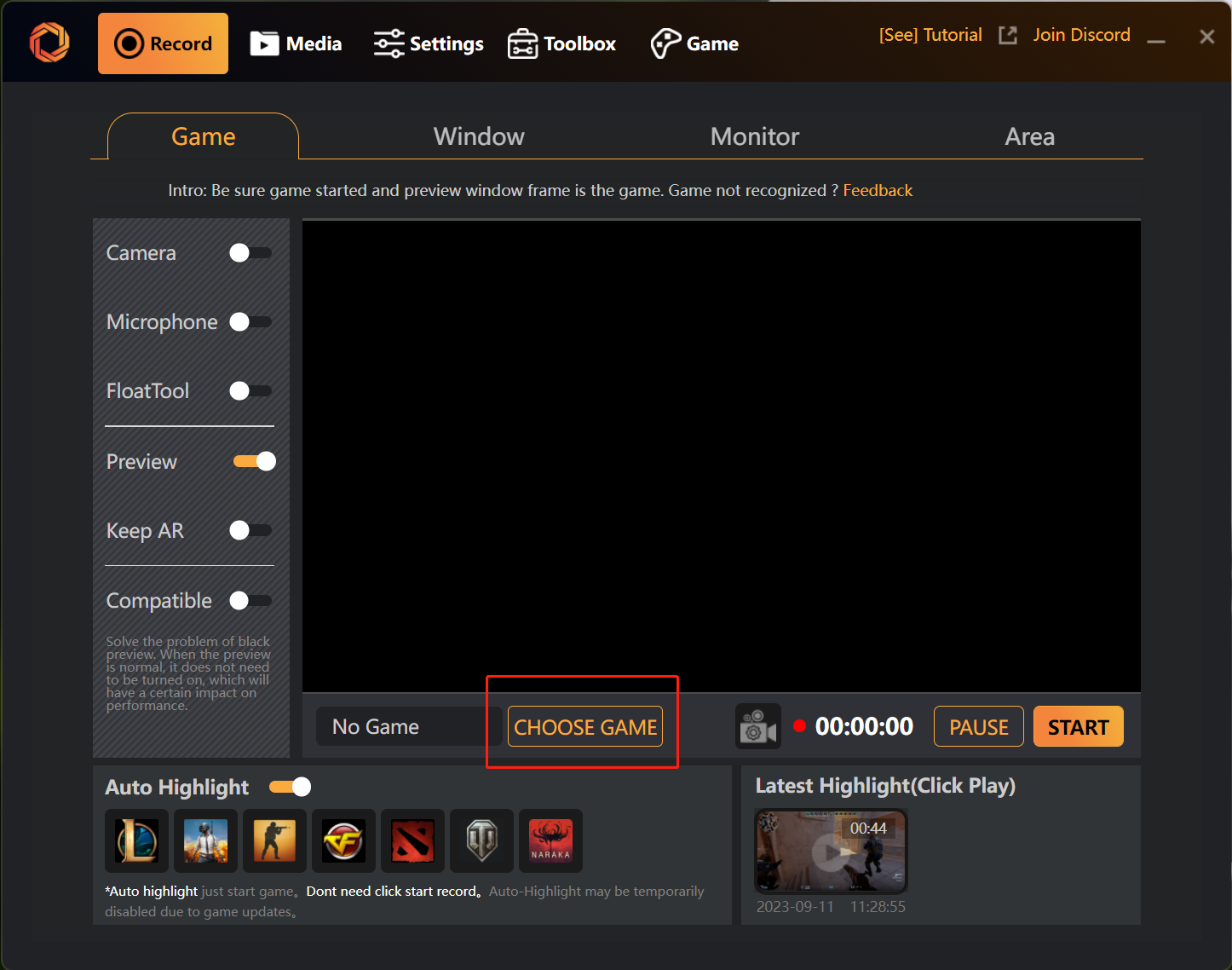 If choose Game mode, GG Recorder will automatically recognise and set to your running game.